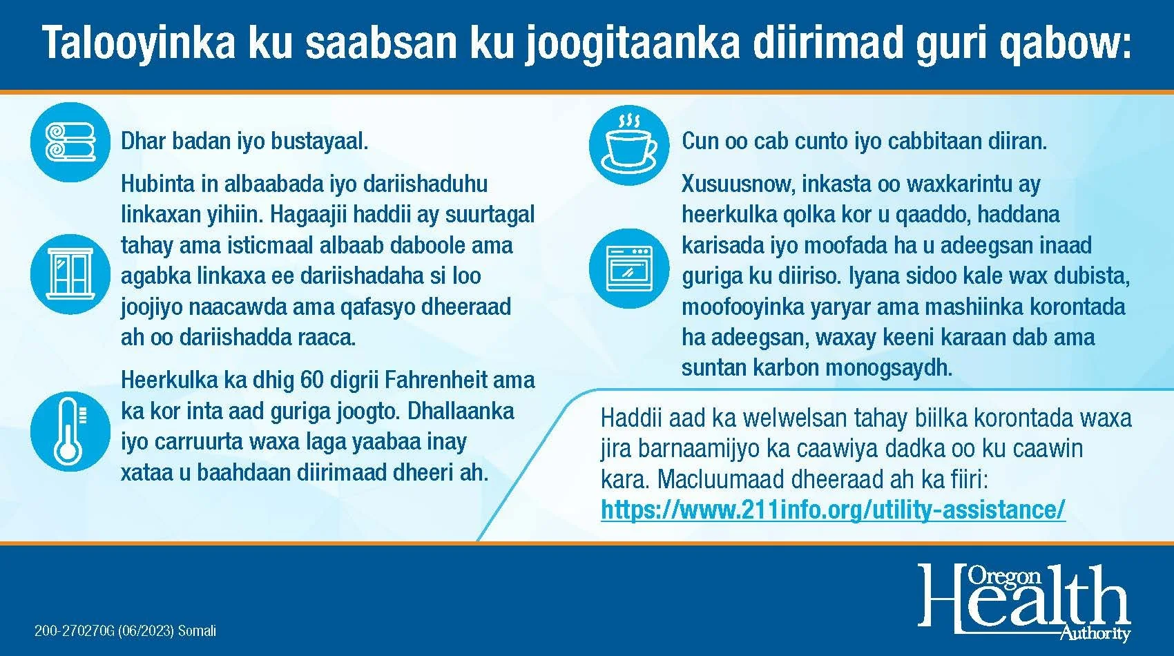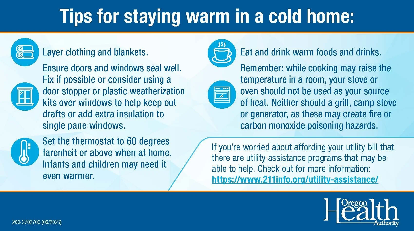 Visit Oregon Health Authority’s website to find more information on how to prepare for winter storms and weather in Oregon.