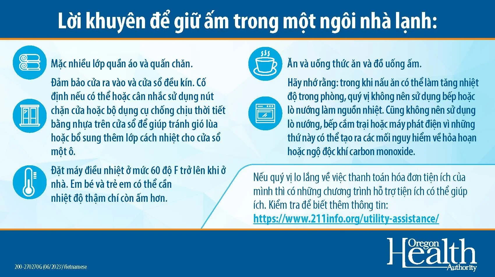 If you need assistance to pay your utility bill, visit the Tri-County (Portland Metro) Utility Assistance page on 211 Info’s website.